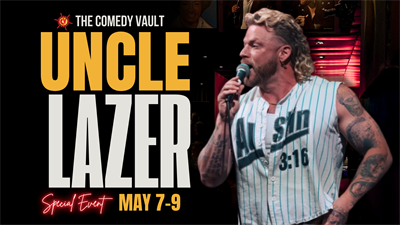 See Uncle Lazer LIVE at The Comedy Vault Batavia May 7-9, 2026.